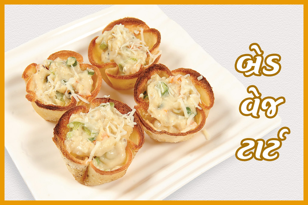 બ્રેડ સ્લાઈસને વણીને ગોળ કાપી લો. મોલ્ડમાં સામાન્ય માખણ લગાવીને બ્રેડને મોલ્ડનો આકાર આપો. માખણ લગાવીને ગરમ ઓવનમાં સોનેરી થાય ત્યાં સુધી બેક કરો. કહાઈમાં માખણ ગરમ કરીને ડુંગળી અને કેપ્સિકમ ફ્રાય કરો. ફ્રાય થતા ગાજર અને બીન્સ નાખીને ફરી ફ્રાય કરો. હવે તેમાં મેંદો નાખો અને ફરી ફ્રાય કરો. પછી દૂધ રેડીને પકાવો. મીઠું, કાળાંમરી અને ચીઝ નાખો. હવે આ સોસના મિશ્રણને બ્રેડ ટાર્ટમાં ભરીને સર્વ કરો.