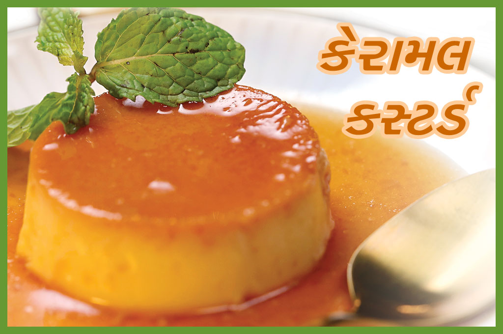 એક જાડા તળિયાવાળા વાસણમાં ખાંડ નાખીને તેને ઓછી આંચ પર ઓવનમાં સોનેરી થવા સુધી ઓગાળો. પછી સીરપને ૪ મોલ્ડ્સમાં ભરીને ઓવનમાં ૧૦ મિનિટ હાર્ડ થવા મૂકો. એક મીડિયમ બાઉલમાં ક્રીમ, ખાંડ, વેનિલા એસેંસ અને જાયફળ નાખીને બરાબર મિક્સ કરો. આ મિશ્રણને ગળણીથી ગાળીને મોલ્ડ્સમાં ત્રણ ચતુર્થાંશ ભરો. પછી ઓવન રેક પર રેક્ટેંગુલર પેન લઈને તેમાં ભરો મોલ્ડ્સ મૂકો. (પેનમાં ગરમ પાણી પછી તેને ત્યાં સુધી પકાવો જ્યાં સુધી તેમાંથી ચપ્પુ સહેલાઈથી બહાર ન નીકળી જાય. પછી સ્પેચુલાની મદદથી કસ્ટર્ડને કિનારીથી બહાર કાઢો અને મોલ્ડની ઉપર પ્લેટ મૂકીને તેની પર ડિશને ફેરવો. હવે તૈયાર કેરામલ સીરપને સોસની જેમ કસ્ટર્ડની કિનારી પર નાખીને મિંટ સ્પ્રિંગથી ગાર્નિશ કરીને સર્વ કરો.