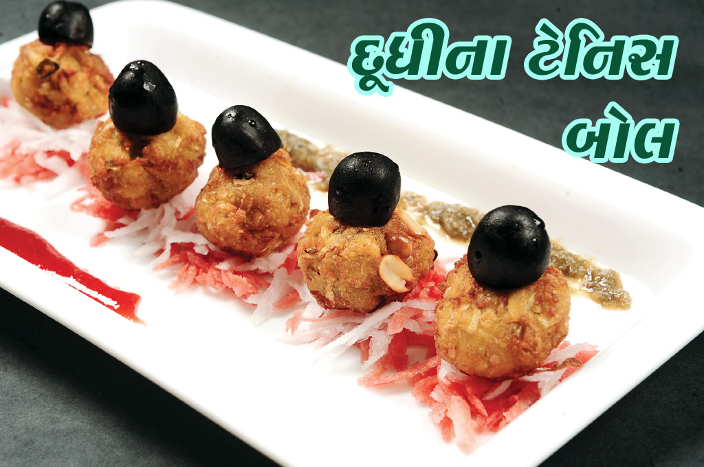 દૂધીને છીણી લો. તેમાં વેસણ, સોજી, આદું, લીલું મરચું અને અન્ય સામગ્રી (તેલ અને દ્રાક્ષ સિવાય) મિલાવીને પાણીથી ઘટ્ટ પેસ્ટ તૈયાર કરો. એક પેનમાં તેલ ગરમ કરો. તેમાં આ પેસ્ટ નાખીને ત્યાં સુધી પકાવો જ્યાં સુધી કે તે ગૂંદેલા લોટ જેવું ન થાય. ઠંડું થતા આ મિશ્રણમાંથી ટેનિસ બોલ બનાવો અને તેને ૧-૨ કલાક માટે ફ્રિજમાં ઢાંકીને રાખો. પીરસો ત્યારે ફ્રિજમાંથી કાઢીને ગરમ તેલમાં ક્રિસ્પી તળો. દરેક બોલ પર ટૂથપિકની મદદથી દ્રાક્ષ સજાવો અને ચટણી સાથે પીરસો.